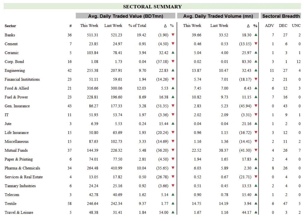 3. Short and precise name of sectors has been used for data presentation which may differ from names mentioned in DSE website.