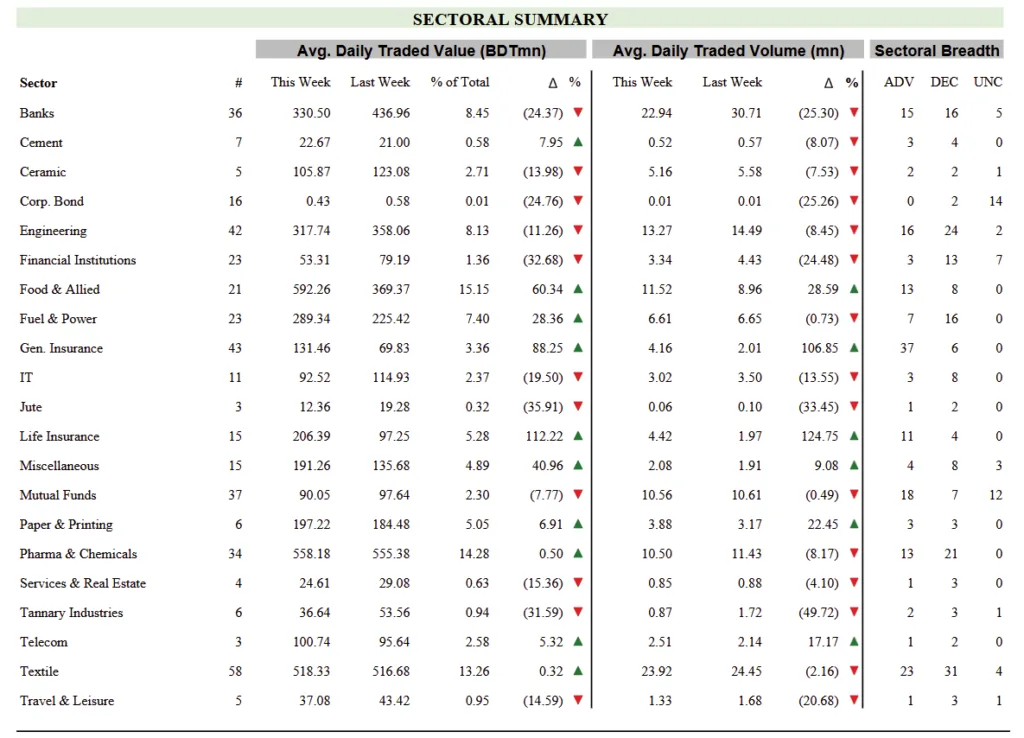 DSE Weekly Market Sectoral Summary Week 11 of 2025