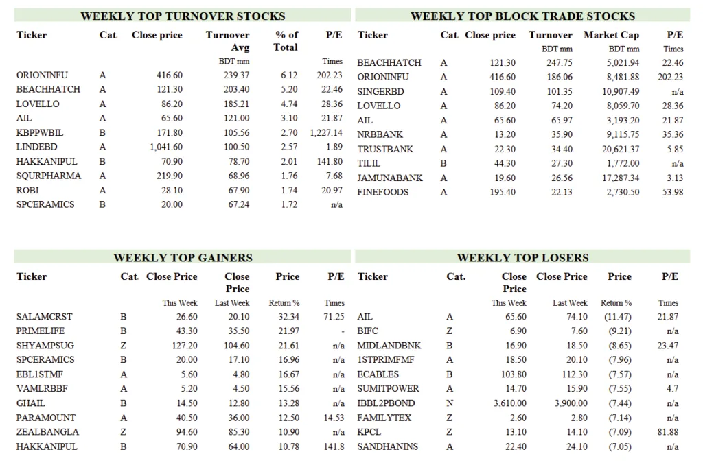 DSE Weekly Market and Index Summary in Picture Week 11 of 2025